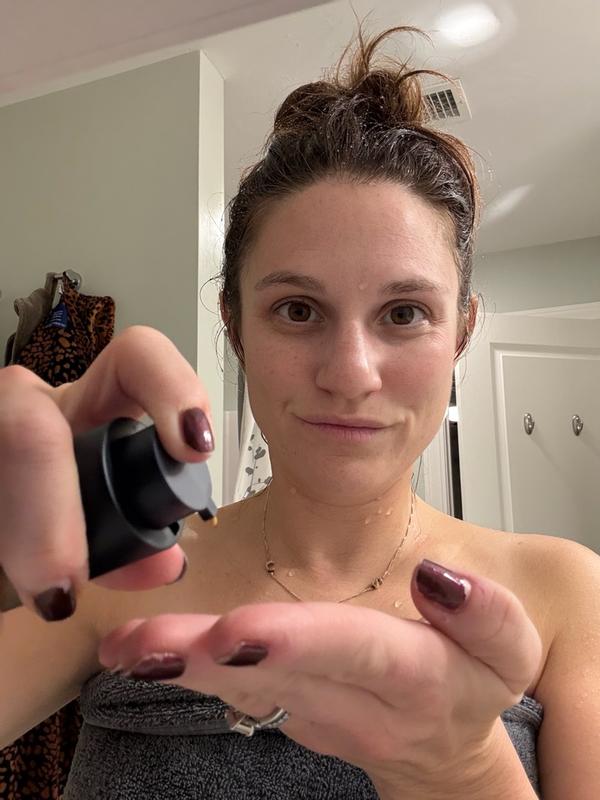 - Apply a thin layer to clean, dry face, neck, and décolleté.